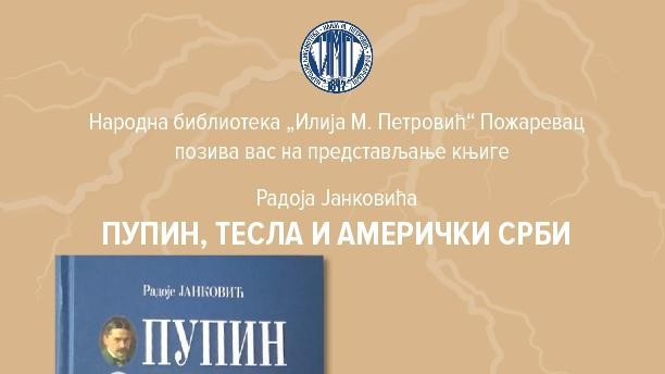 U utorak, 1. novembra 2022. godine će u Narodnoj biblioteci „Ilija M. Petrović“ biti predstavljena knjiga Radoja Jankovića „Pupin, Tesla i američki Srbi“.