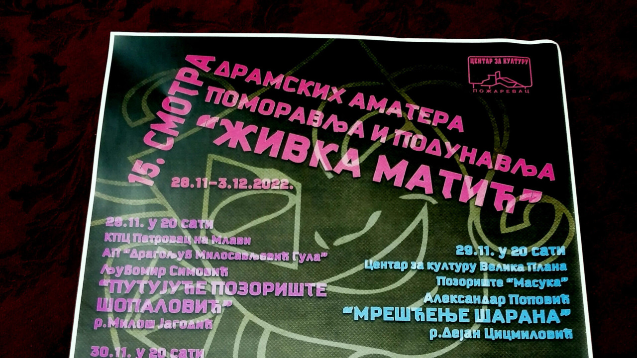 Izabrano je pet takmičarskih predstava koje će biti izvedene na 15. smotri dramskih amatera Pomoravlja i Podunavlja “Živka Matić”, koja se održava od 28. novembra do 3. decembra, u Velikoj Sali Centra za kulturu Požarevac.