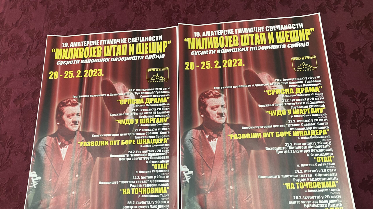 U čast velikana pozorišne scene Milivoja Živanovića, Amaterske glumačke svečanosti „Milivojev štap i šešir“ Centra za kulturu, Požarevac okupljaju amaterska pozorišta Srbije.