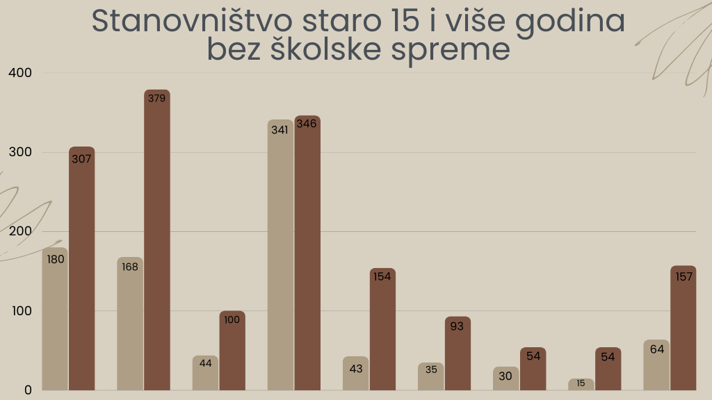 Na nivou cele Srbije, u periodu između dva popisa zabeleženo je smanjenje udela lica bez školske spreme i sa nepotpunim osnovim obrazovanjem sa 13,68% (Popis 2011) na 6,28% (Popis 2022).