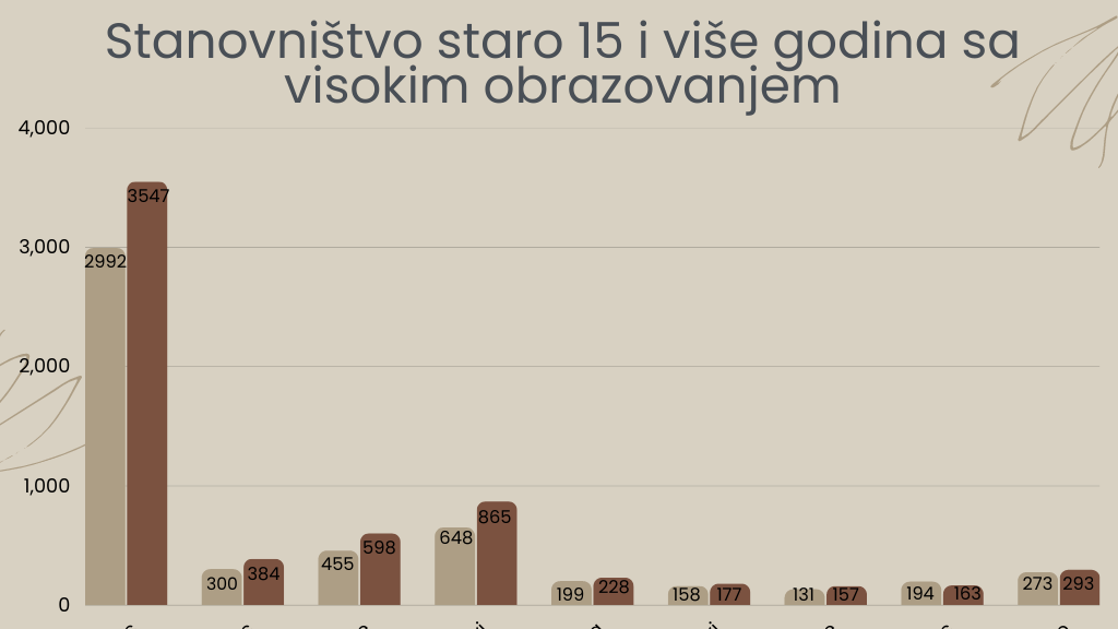 Ukupan udeo stanovništva sa višim i visokim obrazovanjem na nivou cele Srbije u periodu između dva popisa povećan je sa 16,24% (Popis 2011) na 22,44% (Popis 2022).