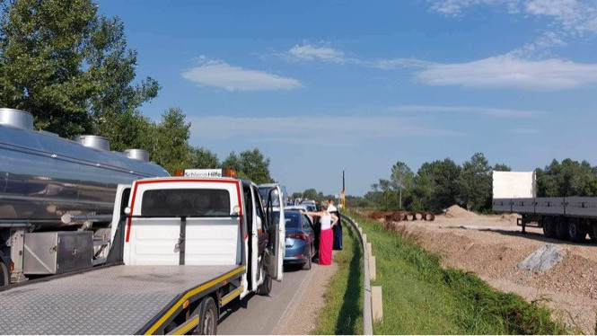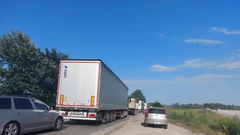 Kolona automobila duga nekoliko stotina metara zaustavila je saobraćaj na jednom delu puta ka Velikom Gradištu. Saobraćaj je zaustavljen u oba pravca.