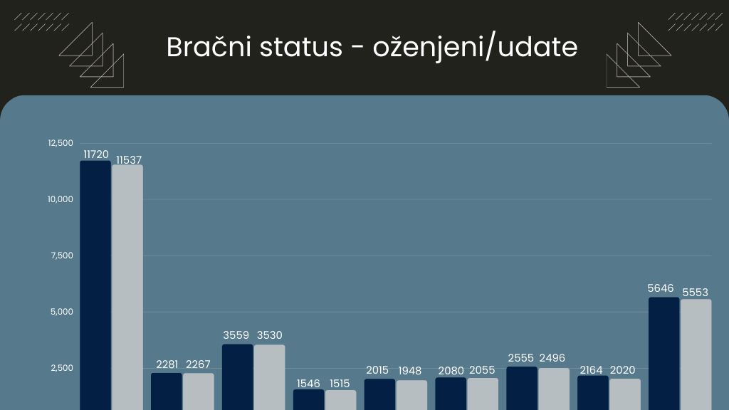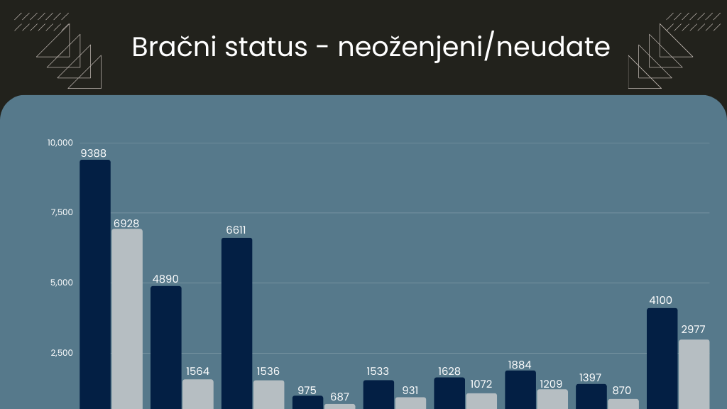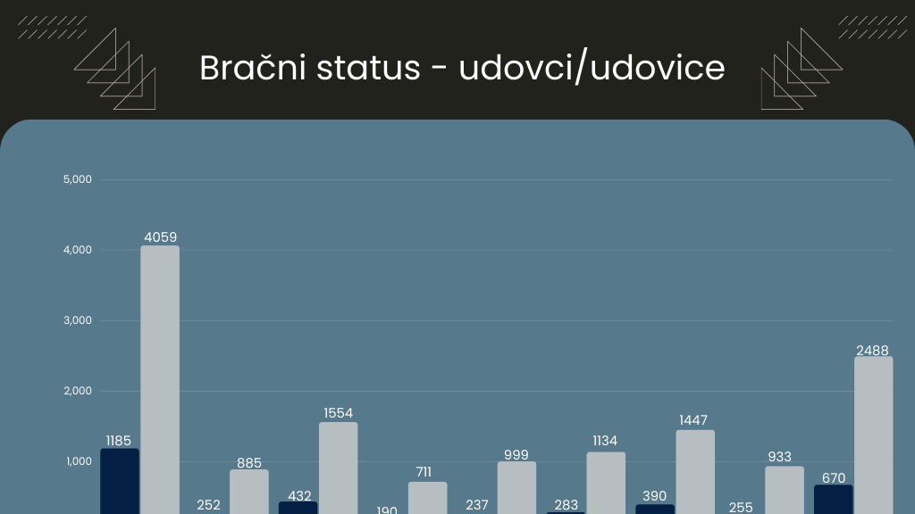 Ovo odgovara slici na nivou Srbije. Naime, među ženama starim 15 i više godina 17,8% je udovica, dok je kod muškaraca udeo udovaca svega 4,9%, navodi RZS.