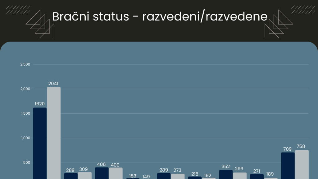 Za razliku od udela stanovništva u braku koji je smanjen, u Srbiji u odnosu na Popis iz 2011. godine za oko 1% povećan udeo razvedenih – sa 4,9% na 6,1%.