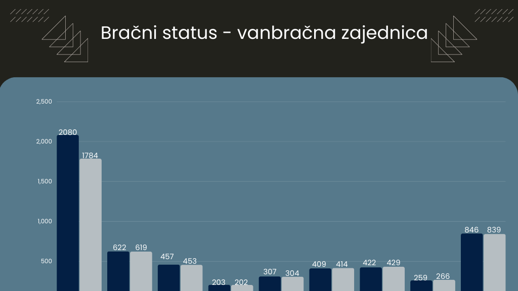 U odnosu na poslednji popis iz 2011. godine zabeležen je porast udela lica koja nisu sklapala brak – sa 28% na 31%.