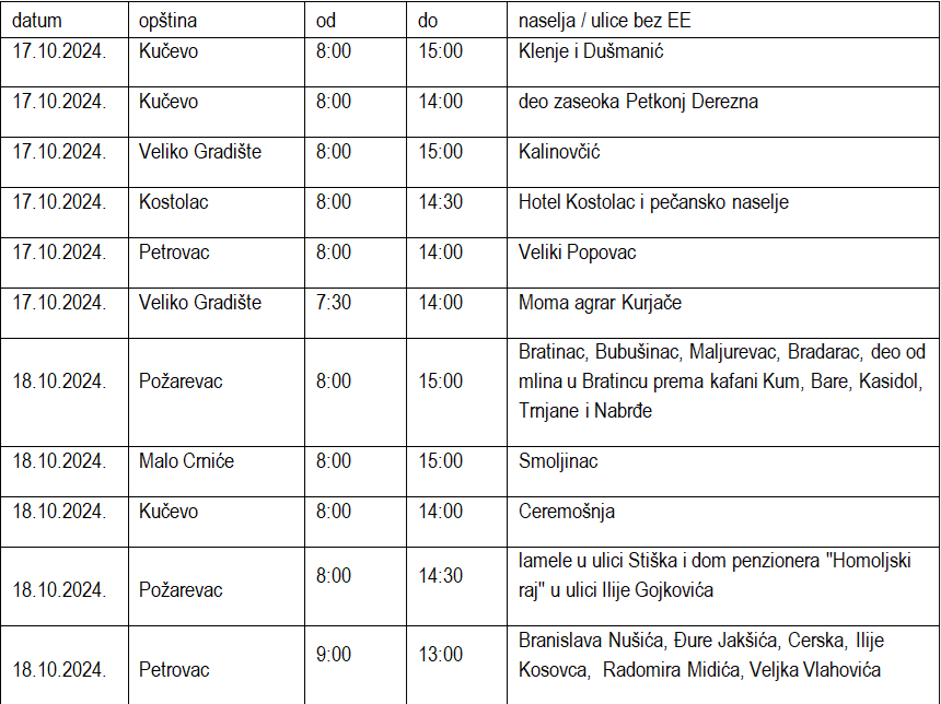 Mole se korisnici da tokom trajanja radova isključe svoje uređaje sa mreže i da ih ponovo uključe po obnavljanju snabdevanja električnom energijom.