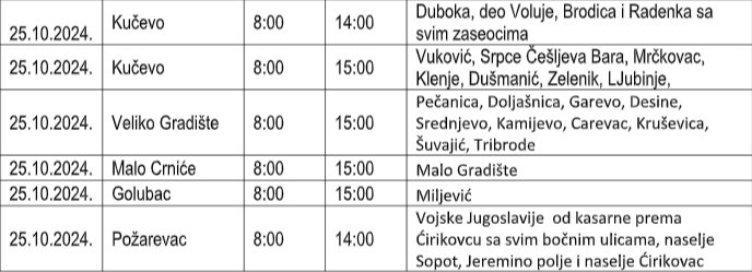 Zbog toga će bez električne energije u petak, 25. oktobra, biti korisnici na sledećim lokacijama:
