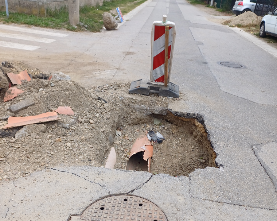 "Rupa se nalazi u ulici Aleksandra Ivanovica. JKP "Vodovod i kanalizacija" je u prethodnom periodu popravilo cev koja puca po ko zna koji put na istom mestu. Nakon radova rupa je zatrpana. Nakon dva dana kamion JKP "Komunalne sluzbe" je upao u tu istu cev i polomio cev za kišnu kanalizaciju. Cev za vodu je ponovo pukla, a JKP "Vodovod i kanalizacija" je cev zakrpio i ostavio da stoji kako se vidi na slikama", navodi se u komentaru našeg čitaoca.
