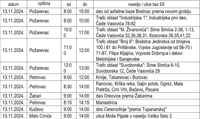 Zbog toga će bez električne energije biti korisnici na sledećim lokacijama: