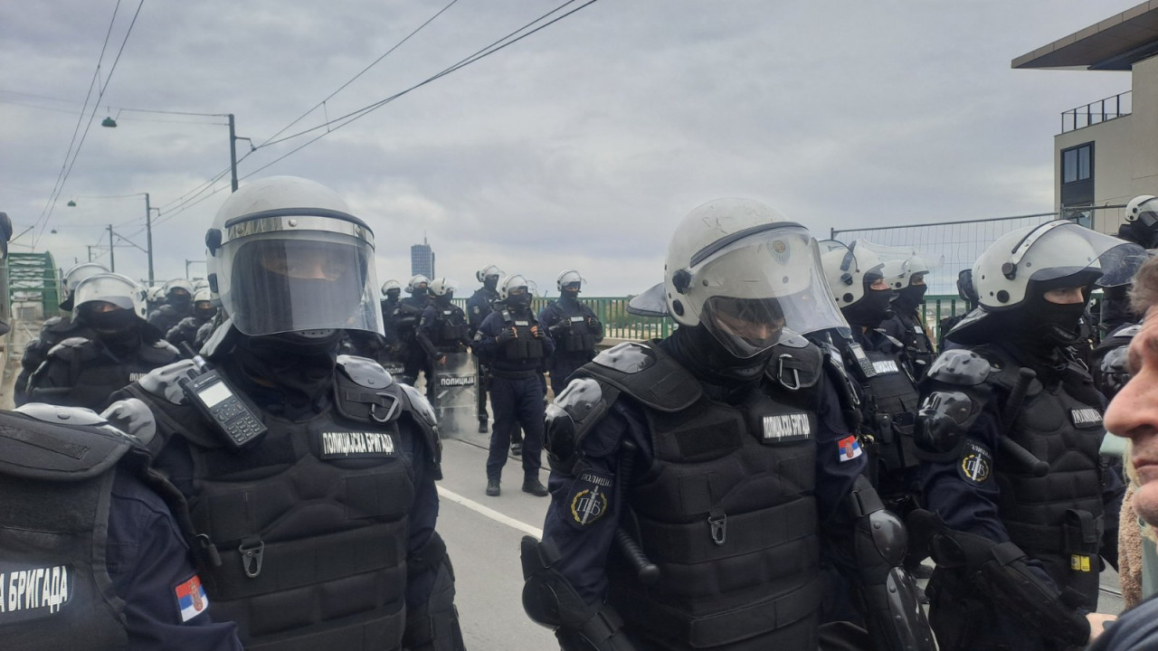 „Teške policijske snage raspoređene su sa obe strane mosta, pogotovo na novobeogradskoj strani, koja im služi kao lansirna rampa za pristup mostu, za odnošenje šina, za demontažu, dovoženje mašina i tako dalje. Sa ove strane je sve, kao i tokom noći i tokom jutra, dosta mirno. Kordon stoji i čeka dalja dešavanja“, rekao je on za N1.