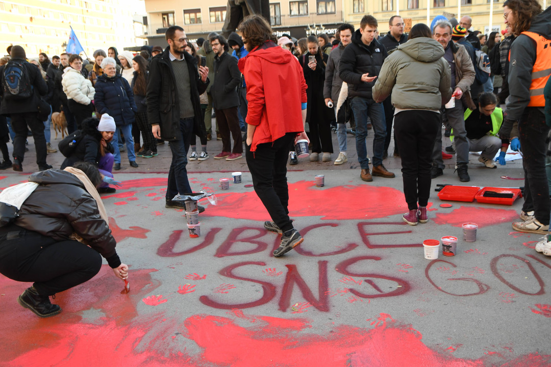 Kolona građana u centru Novog Sada, ofarbali Trg slobode u crvenu boju