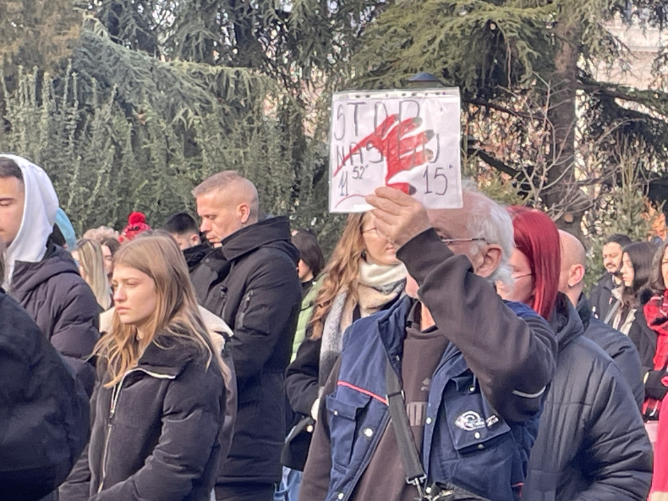 Tokom akcije “15 minuta tišine” nošeni su transparenti s natpisima "Gimnazijalci imaju obrazovanje", "Politika nije samo stranačka, već i građanska", "Nećemo ćutati dok kažnjavate one koji stoje uz nas", "Ne bi bilo ove krvi da je bilo sve po zakonu", "Sistem je pao pre nadstrešnice", "Krvave su vam ruke"...