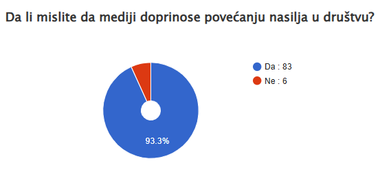 Većina ispitanika smatra da mediji doprinose povećanju nasilja u društvu.