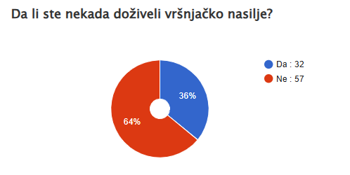 Najčešći oblik nasilja kod ispitanika koji su ga doživeli bilo je verbalno nasilje (25 odgovora), psihičko (19) i fizičko (17). Da je doživelo društveno isključivanje navelo je 10 ispitanika. Digitalno nasilje doživela su dva ispitanika.