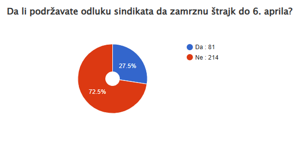 Nešto više od 70% građana ne podržava odluku sindikata da zamrznu štrajk.