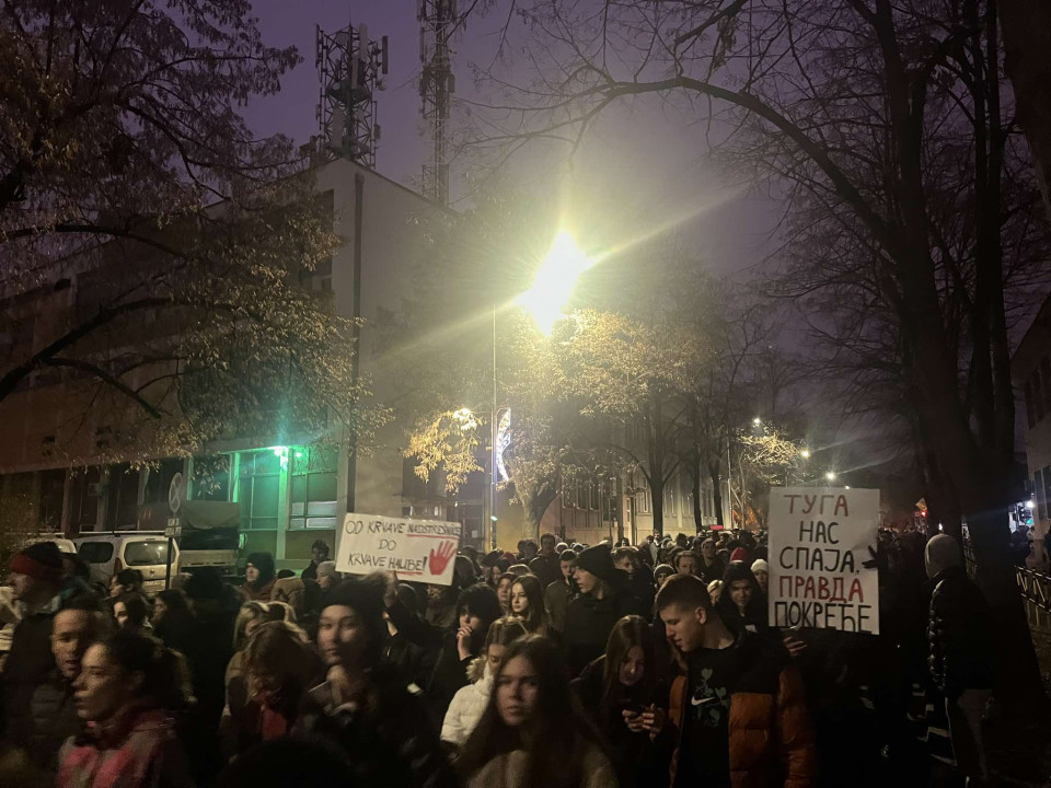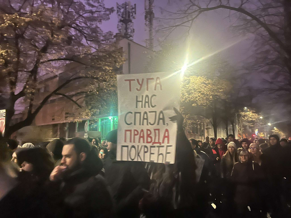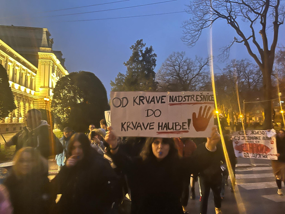 16:58: Prolazeći kroz ulicu Jovana Šerbanovića demonstranti uzvikuju "Krvave vam ruke"