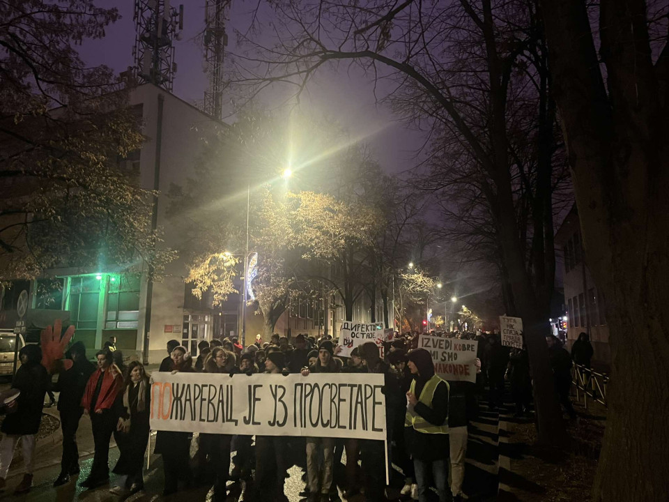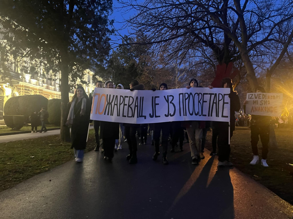 Pozdravljam proteste maturanata i njihovih profesora u Pozarevcu. Kao i sve proteste studenata sirom Srbije. Zaista je poslednji cas. Pravda je spora ali ako smo svi slozni pobedice. Mora. Neka pravda i istina dugo skrivana zasija kao Sunce sto pre u celoj Srbiji.