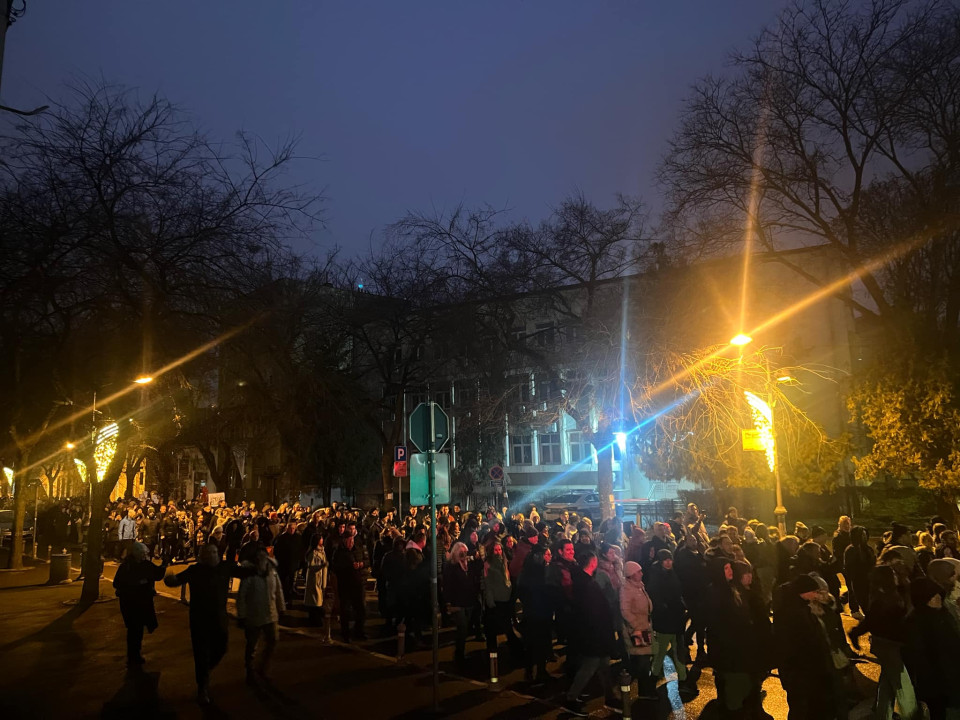 17:04 Demonstranti prolaze kroz ulicu Moše Pijade