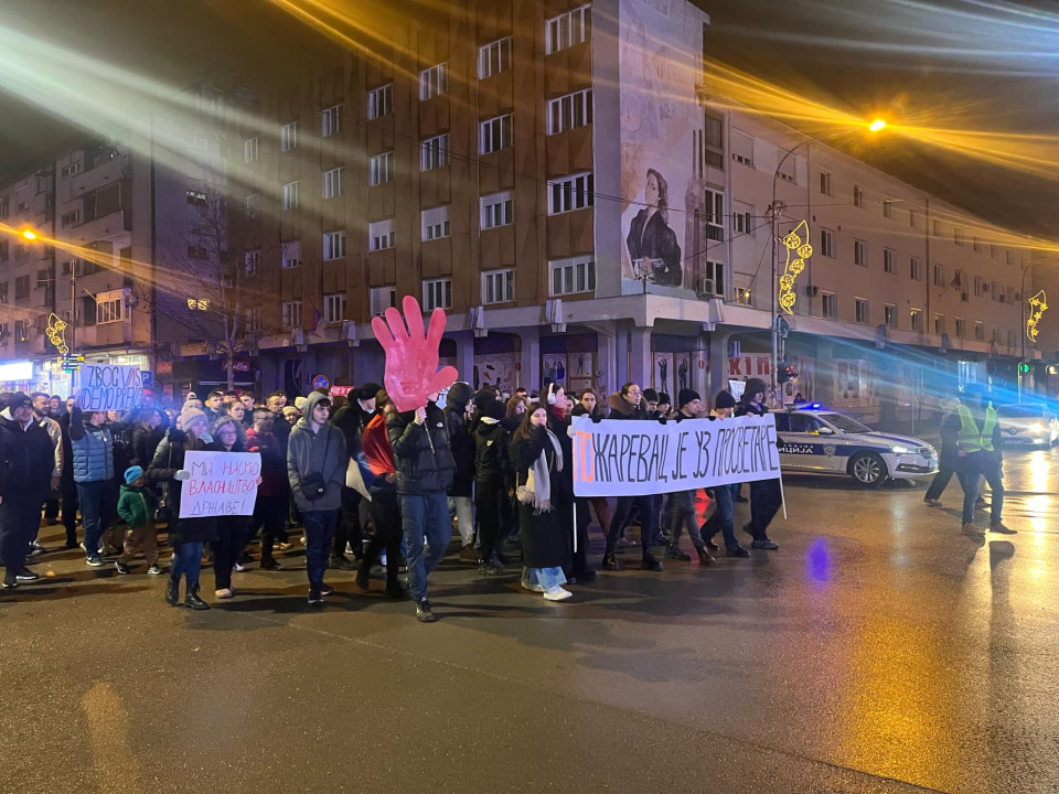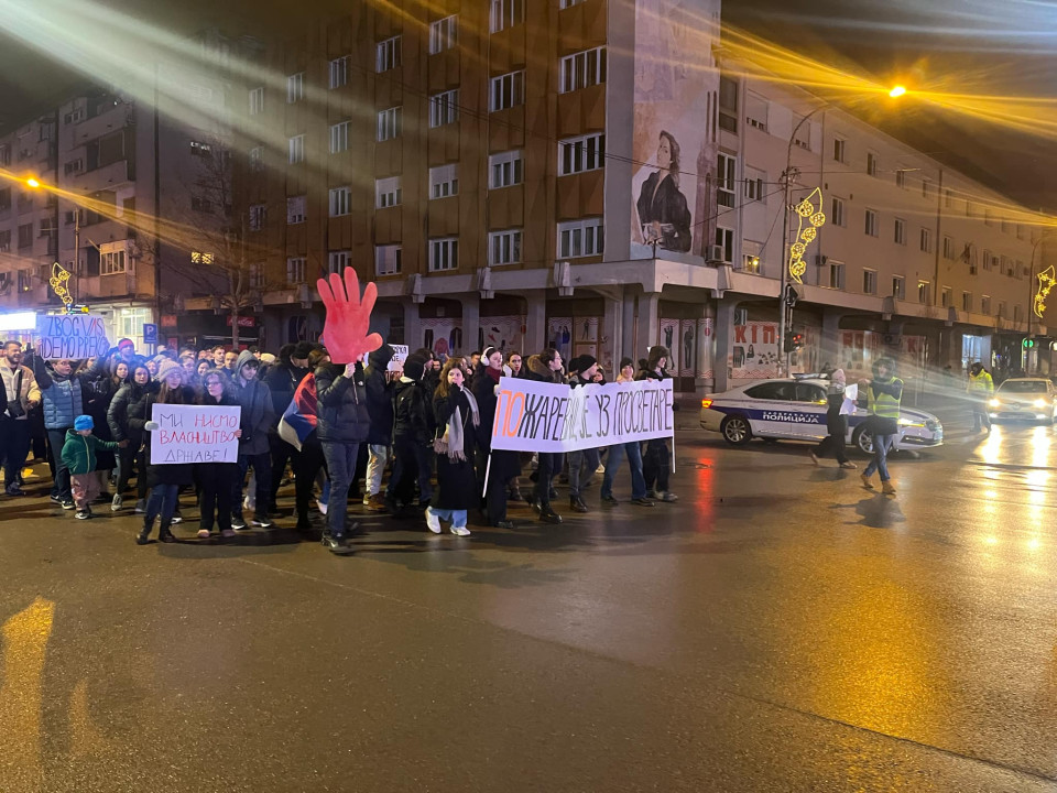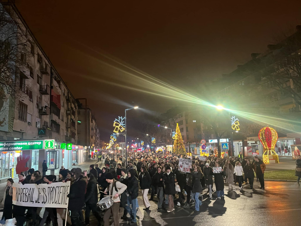 Nakon petnaestominutne tišine, učenik Bogdan Stanković je pročitao pismo prosvetarima nakon čega je krenula šetnja oko centra grada