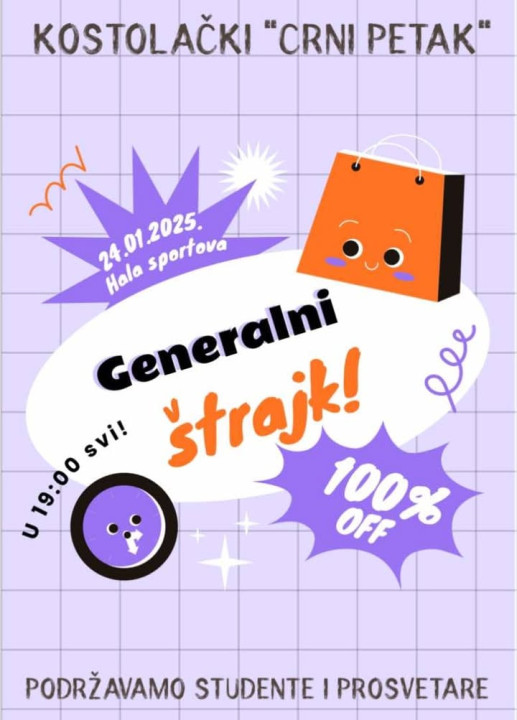 U Kostolcu će u petak, 24. januara 2025. godine, biti organizovan generalni štrajk u znak podrške studentima i profesorima.