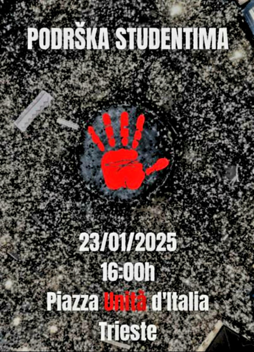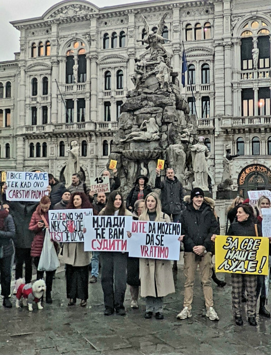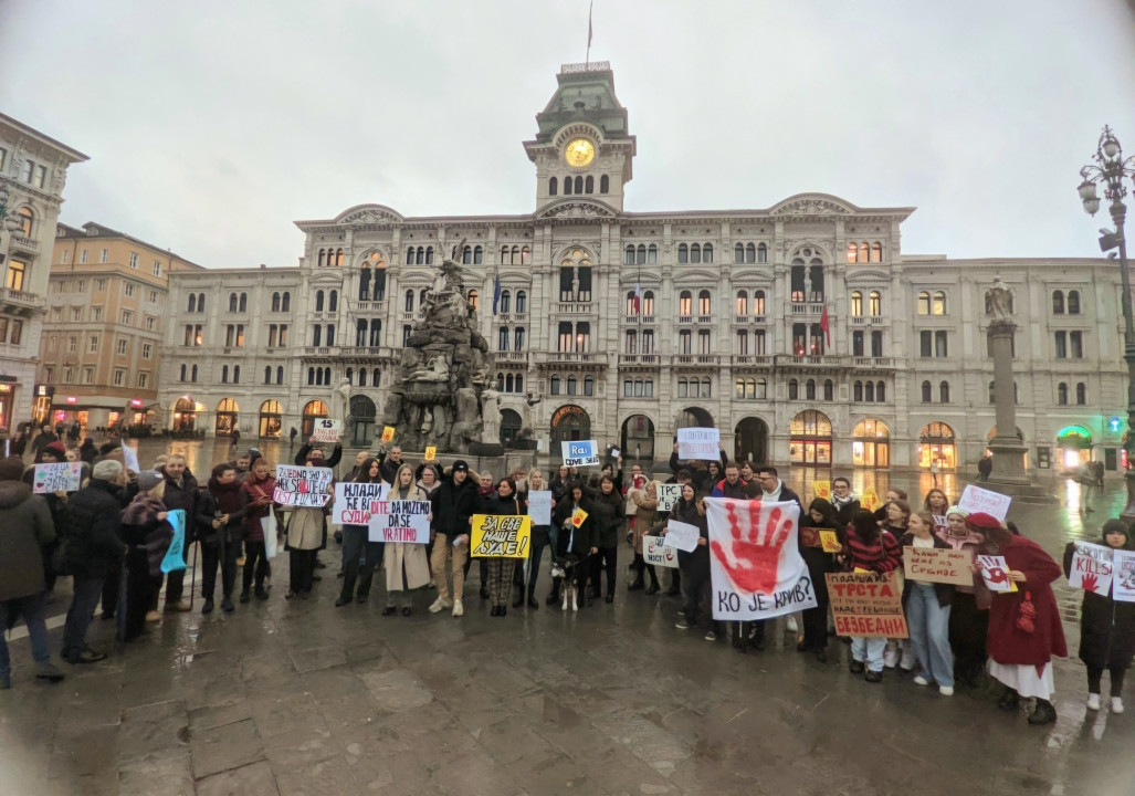 Na trgu Piazza Unità d'Italia u Trstu, danas u 16 časova, studenti i građani iz Srbije koji žive u ovom gradu i okolini okupili su se kako bi odali počast nastradalima u Novom Sadu i pružili podršku studentima.