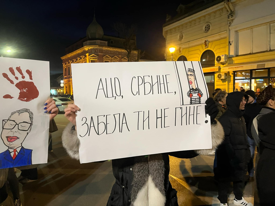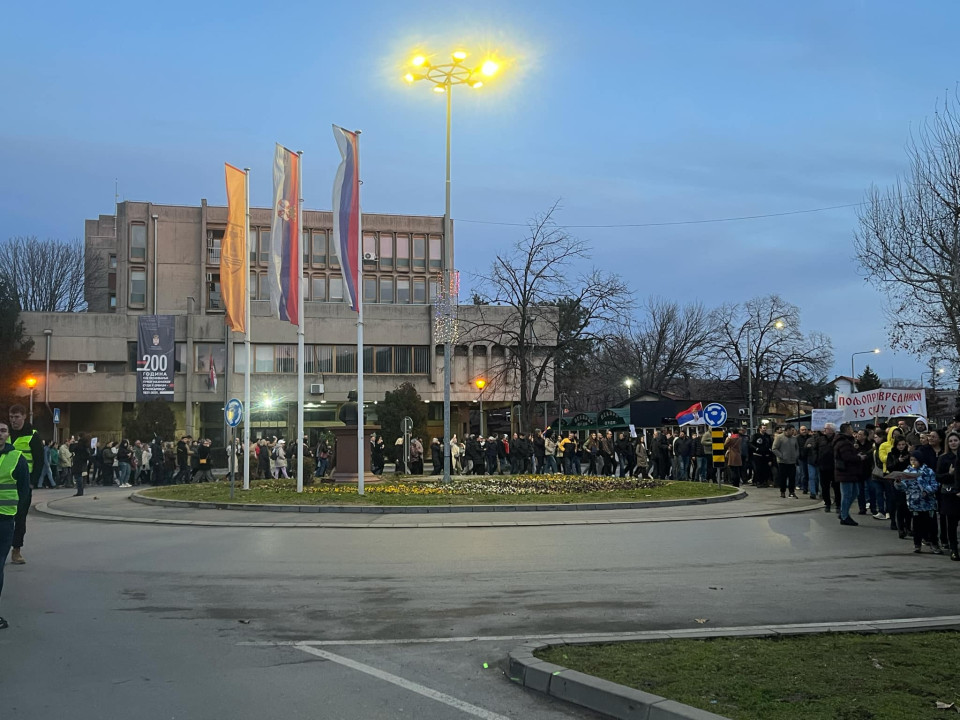 Prisutni su učenici, prosvetni radnici i ostali građani koji pružaju podršku studentskim zahtevima i traže odgovornost za 15 nastradalih pri padu nadstrešnice u Novom Sadu.