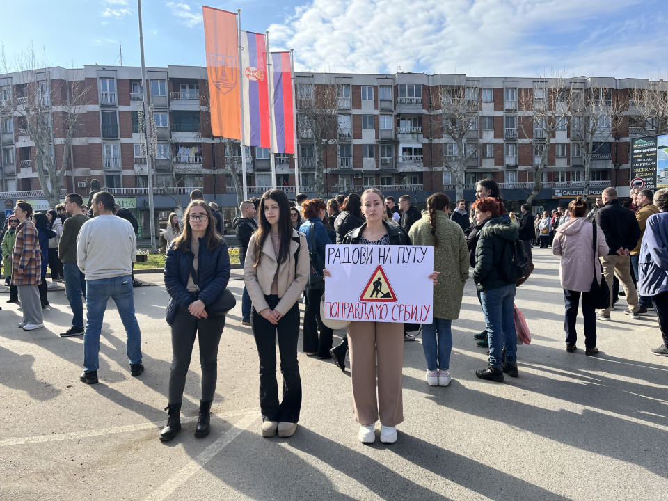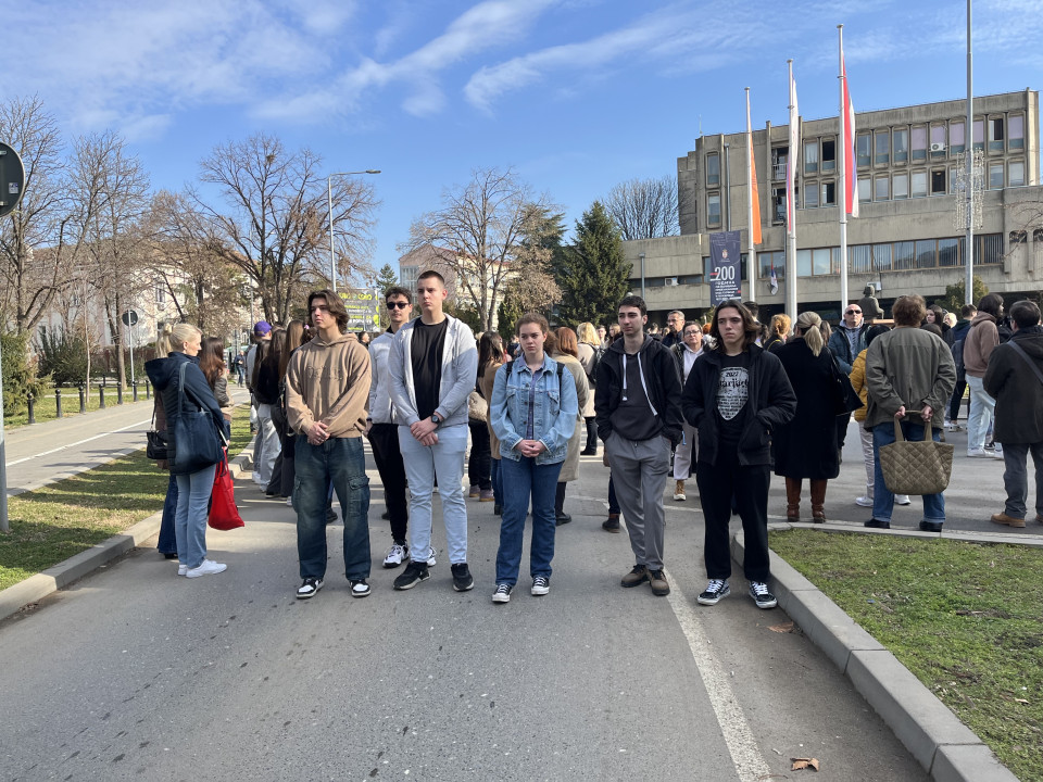 Oni su od 11:52 do 12:08 blokirali kružni tok kod Višeg suda i petnaestominutnom tišinom odali počast stradalima u padu nadstrešnice na Železničkoj stanici u Novom Sadu.