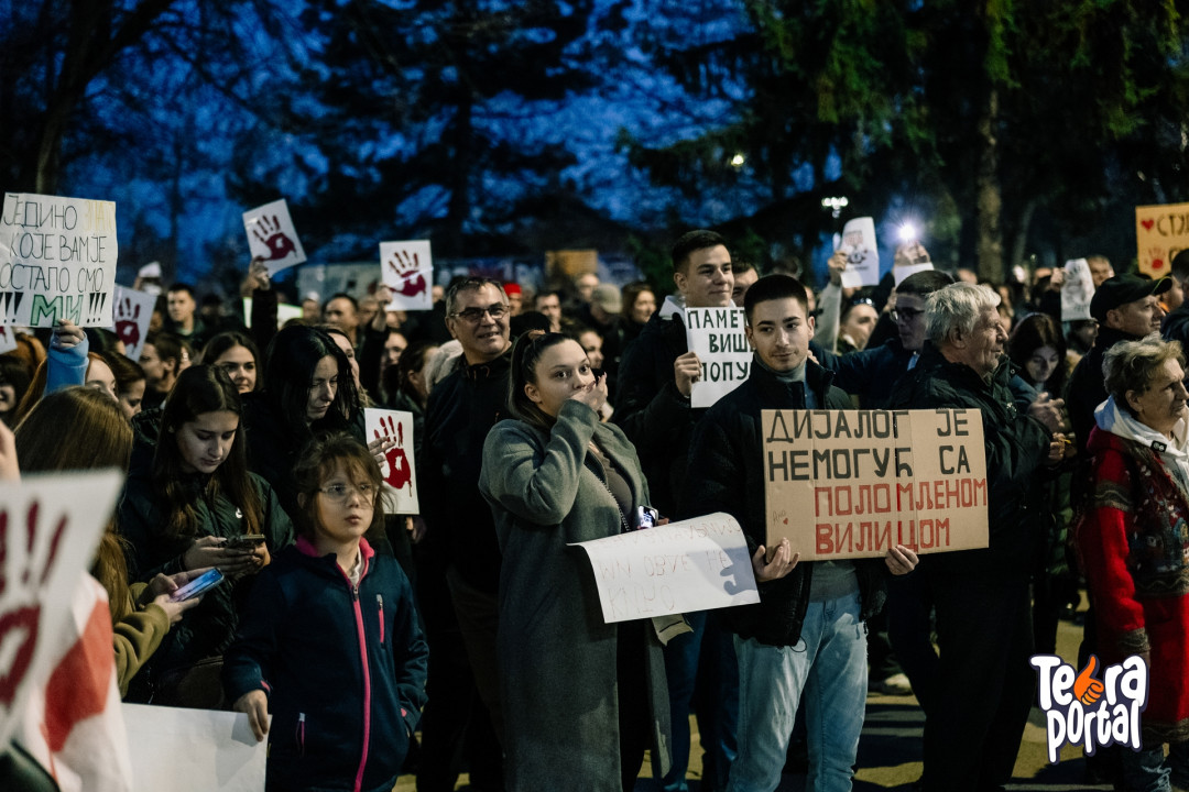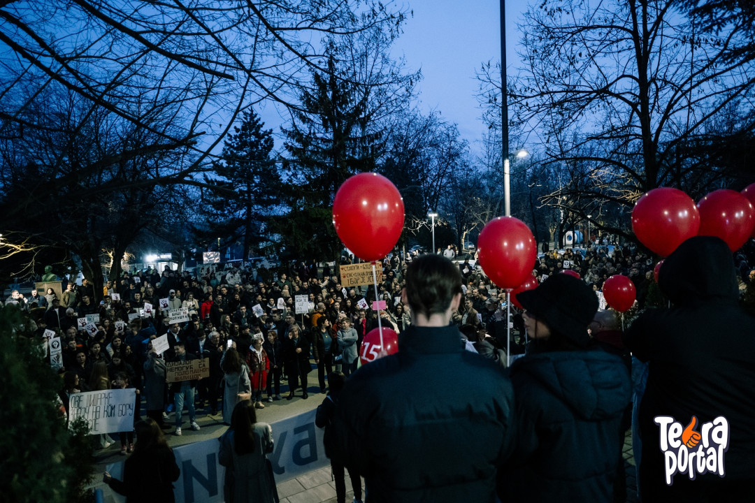 Građani su u Eco park pristigli u 17 časova, gde su im se neprestano pridruživali novi učesnici. Ispred studentskog doma srednjoškolci i studenti, održali su govor podrške.