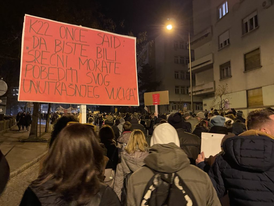 20.30 - Muzičarka Bojana Vunturišević održala je govor pre pet minuta tišine. Istakla je da je najponosnija jer je sestra jedne studentkinje koja je sinoć sa svojim kolegama došla iz Beograda u Novi Sad.