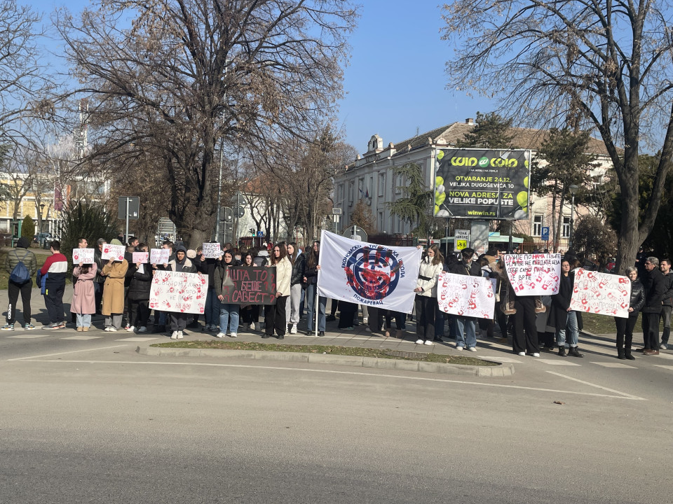 Maturanti Požarevačke gimnazije zajedno sa pojedinim profesorima i profesorkama, danaj su tačno u 11:52 blokirali Kosovsku ulicu na 15 minuta.