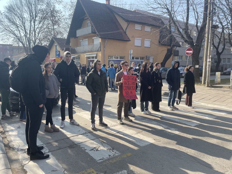 Blokirana je bila i ulica Jovana Šerbanovića kod Ekonomsko-trgovinske škole, a na blokadama je bio deo maturanata ove i Politehničke škole. Njima su se pridružili i građani.