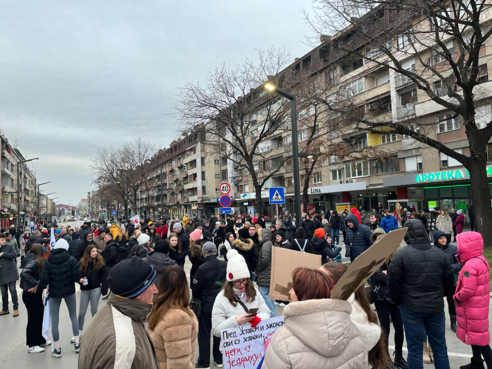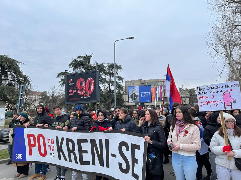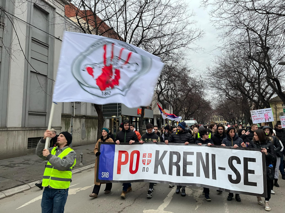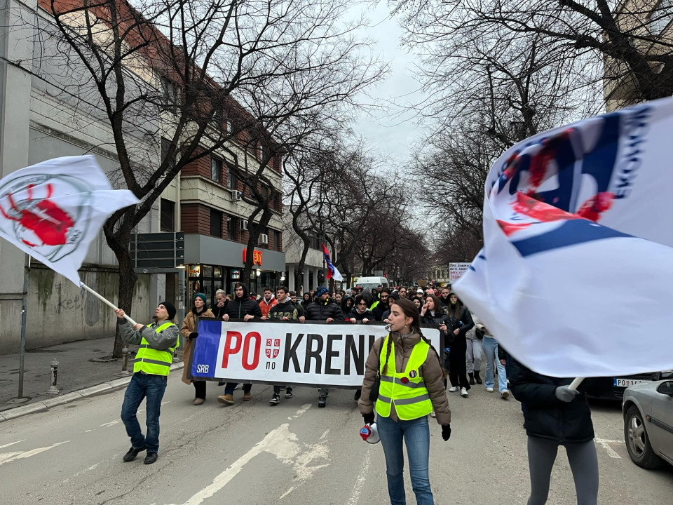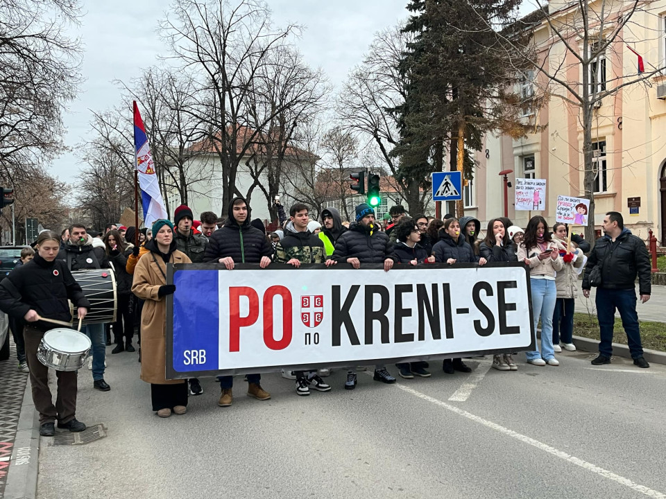 Još jedan protest maturanata Požarevačke gimnazije i Ekonomsko-trgovinske škole pod nazivom "POkreni se" počeo je u centru grada.