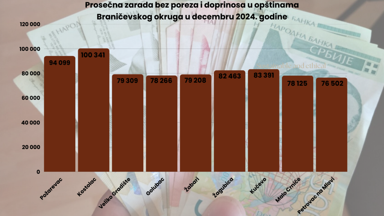 Kao i svakog meseca, najvišu prosečnu zaradu među opštinama Braničevskog okruga ima Kostolac, gde je prosečna zarada u decembru iznosila 100 341 dinar.