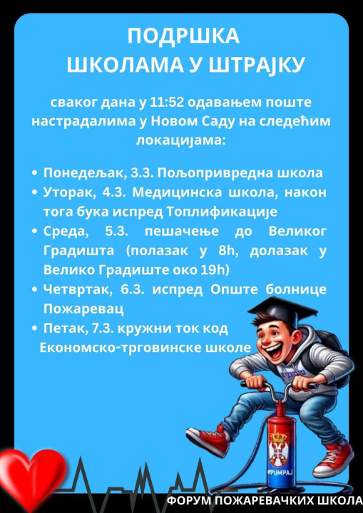 Forum Požarevačkih škola najavio je blokade na novim lokacijama tokom ove nedelje.