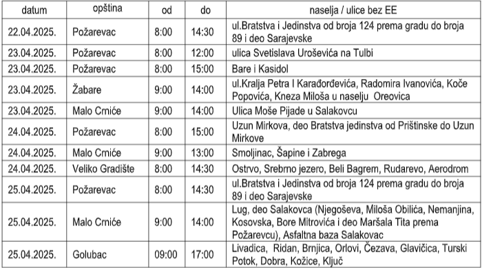 Zbog toga će bez električne energije biti korisnici na sledećim lokacijama: