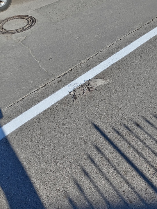 U ulici Stanoja Glavaša horizontalna signalizacija obeležena je, a da, kako sugrađanin koji nam je poslao fotografije kaže, nije prethodno uklonjena mrtva ptica.
