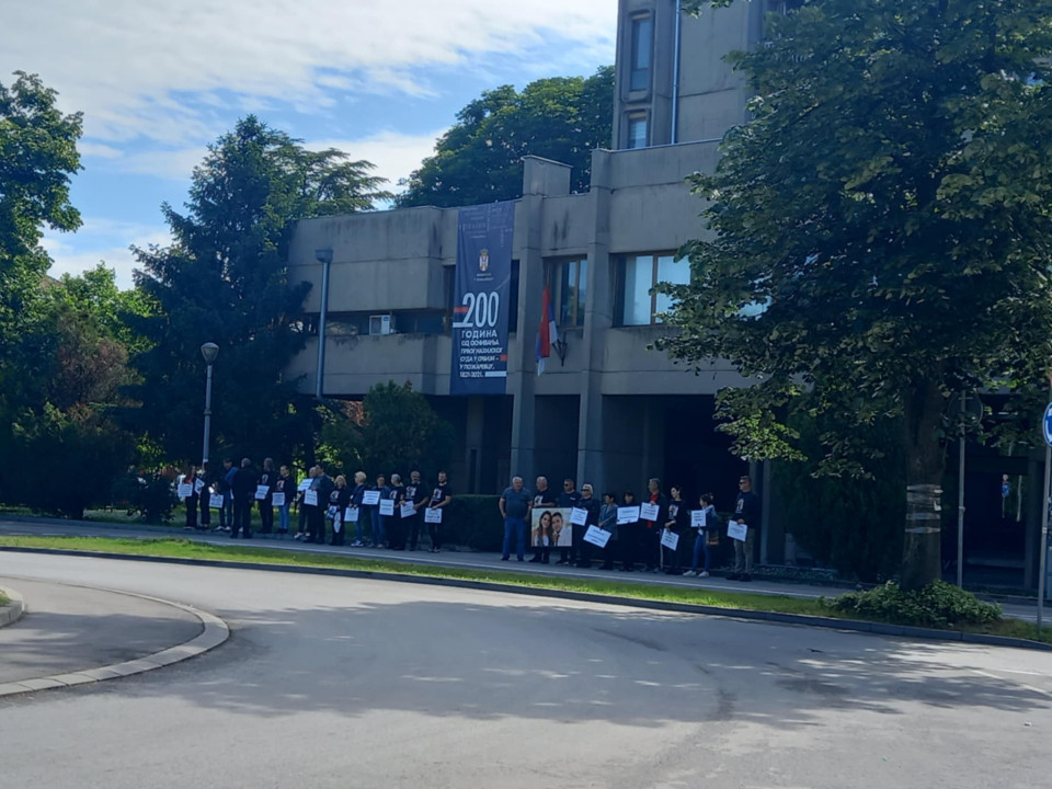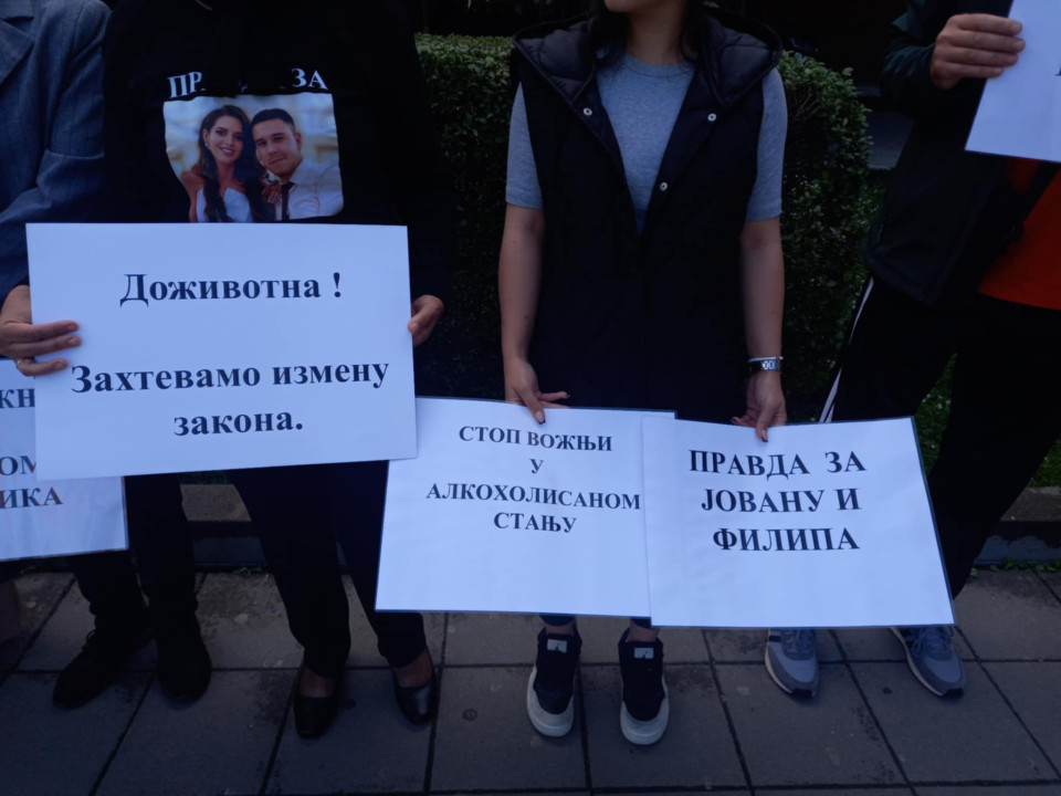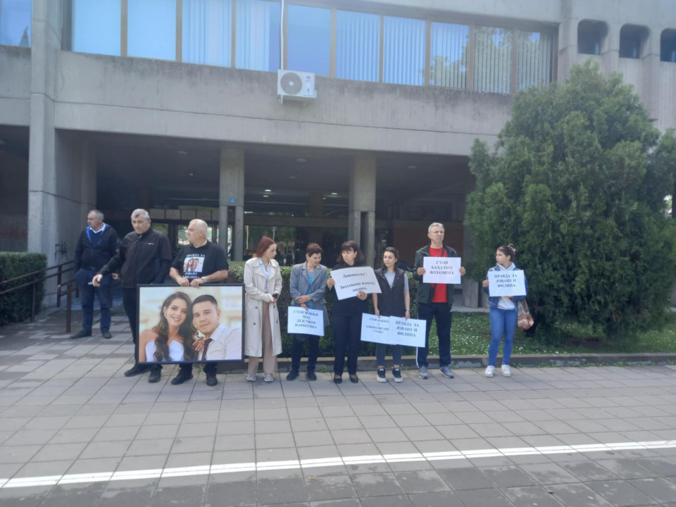Porodica Filipa Vukolića i Jovane Cvijović koji su 18. maja prošle godine izgubili život u saobraćajnoj nezgodi na putu Veliko Gradište - Požarevac i danas su mirno protestvovali ispred Višeg Javnog tužilaštva uoči početka suđenja protiv okrivljenog A.S.