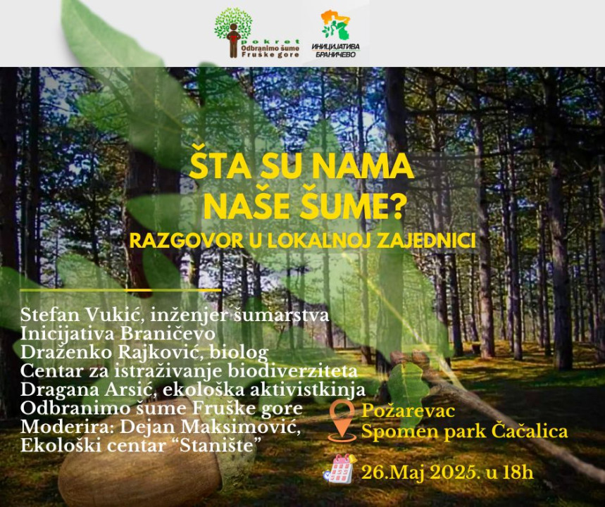 Tribinu organizuju Pokret Odbranimo šume Fruške gore iz Novog Sada i Inicijativa Braničevo.