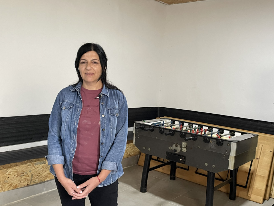 "Ovde je bio ranije laminat. To je sve podignuto, rađena je nivelacija podova, betonaža i urađene su ove pločice. Zidovi su gletovani, sanirani, sređeni, tako da smo doveli prostoriju u neko stanje, da kažem, prijatno, gde mladi mogu da se druže, da provode slobodno vreme, da se bave rekreativno sportom", kaže meštanka i jedna od članica neformalne grupe građana, Dijana Đukić.