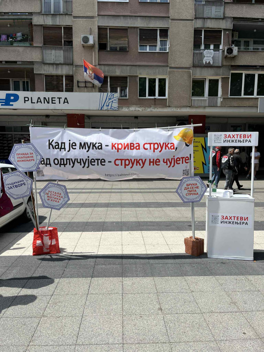 Na protestu je postavljen i štand incijative "Zahtevi inženjera". Ovu grupu čine inženjeri iz oblasti građevinarstva, mašinstva, elektrotehnike, arhitekture, saobraćaja i ostalih tehničkih nauka traže od Ministarstva građevinarstva izmenu Zakona o planiranju i izgradnji i postavljanje stručnjaka na ključne pozicije u nadležnim institucijama.
