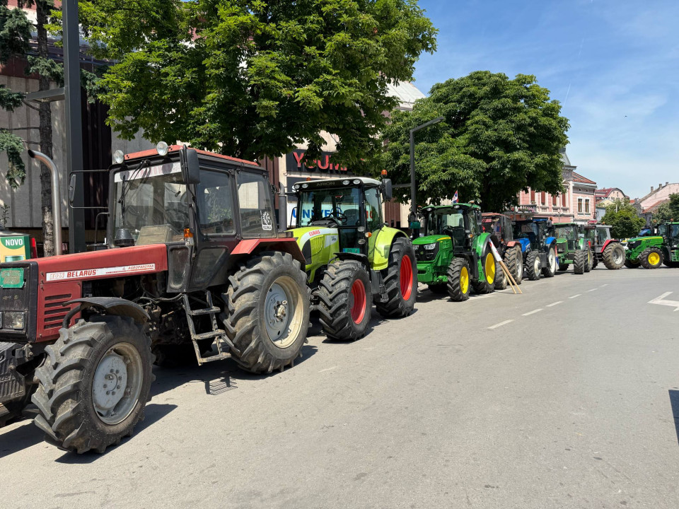 Protestu su se pridružili poljoprivrednici, koji su na protest došli sa oko 50 traktora, koje su parkirali oko kružnog toka u centru grada.