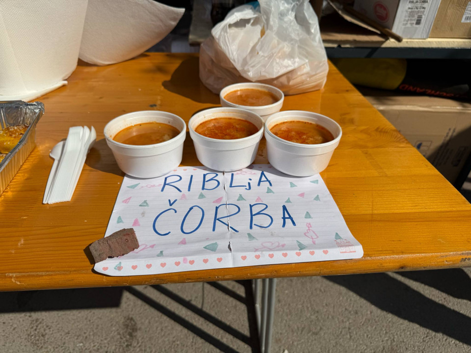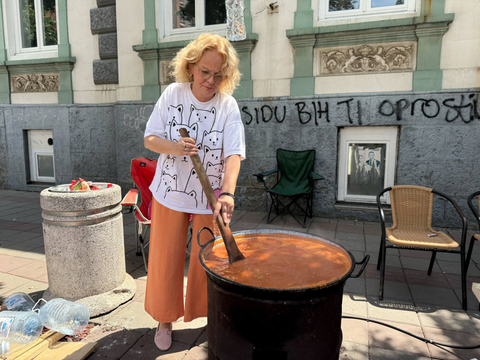 Krenulo je posluživanje gulaša, vegeterijanske i riblje čorbe, koje su danas pripremali građani za učesnike protesta.