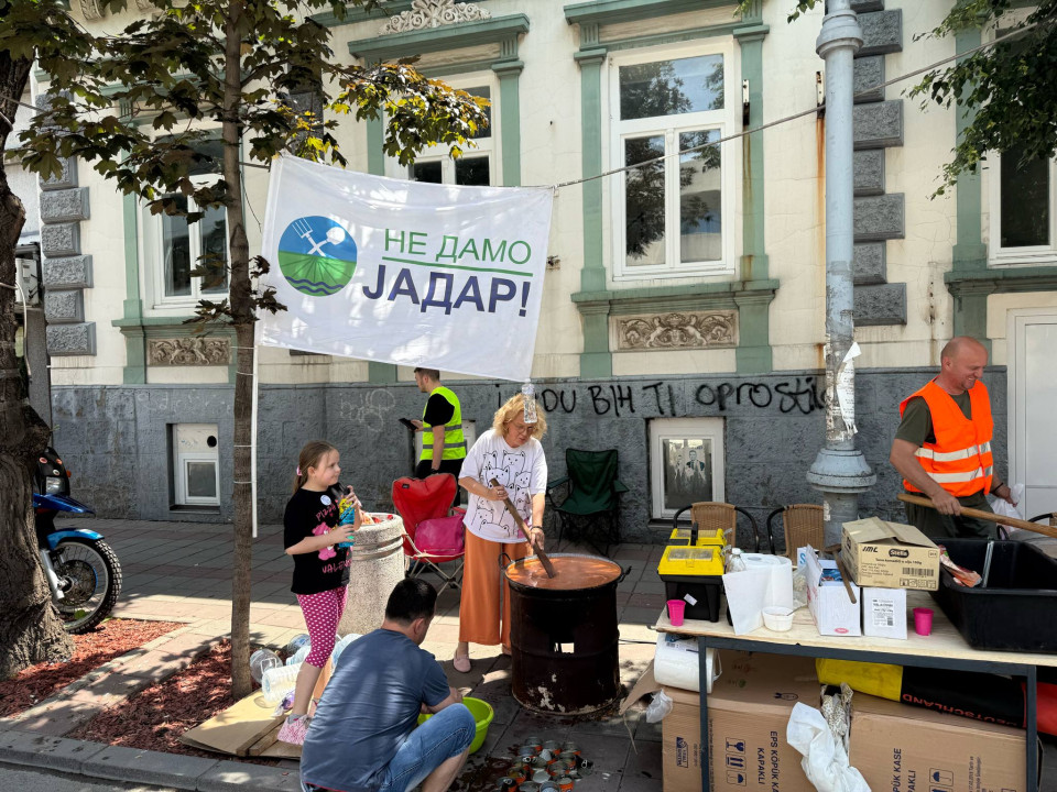 Na današnjem protestu su i članovi Udruženja "Ne damo Jadar". Neki od njih nalaze se u Lenjinovoj ulici, gde zajedno sa ostalim građanima učestvuju u pripremi vegeterijanske čorbe. Za učesnike protesta građani pripremaju i riblju čorbu i gulaš.