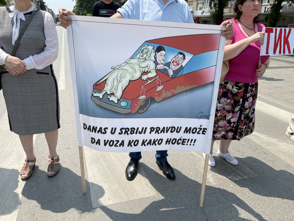 Blokadu je kao i svakog petka obezbeđivala policija, a saobraćaj je na 16 minuta bio obustavljen u Tabačkoj čaršiji.