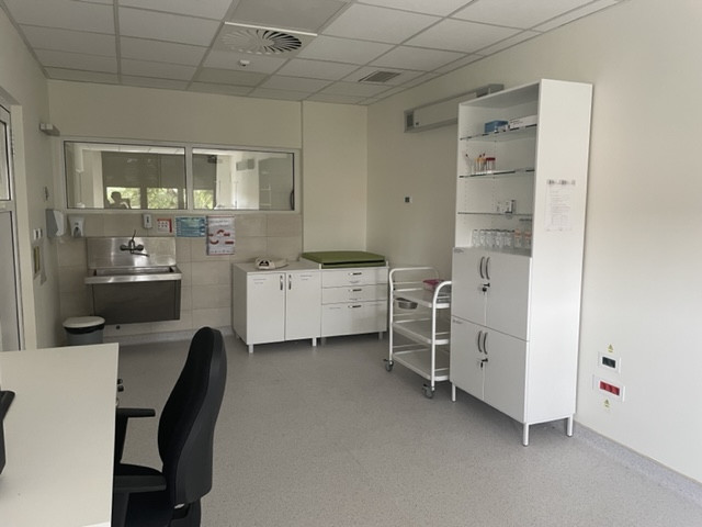 U prizemlju ove zgrade nalaze se ambulante za pregled pacijenata, a ovde je odnedavno i nova laboratorija, koja je delimično puštena u rad. U suterenu se nalazi odeljenje patologije.