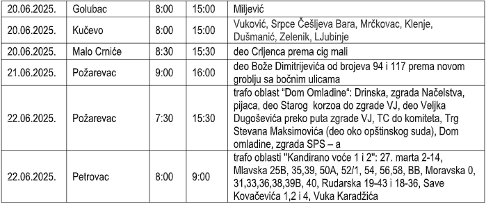 Zbog toga će bez električne energije biti korisnici na sledećim lokacijama: