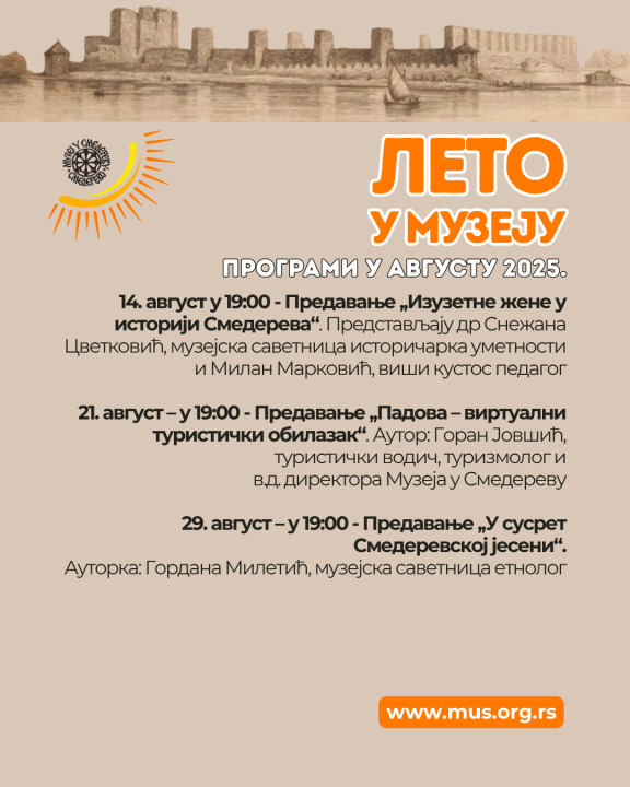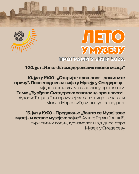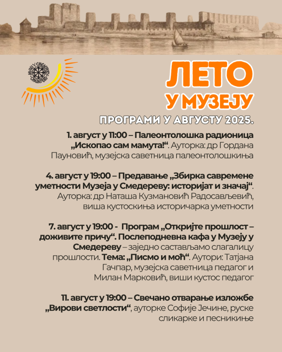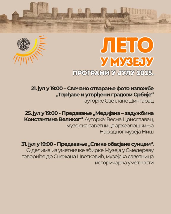 U Muzeju u Smederevu danas, 1. jula, počinje program "Leto u Muzeju", koji će se odvijati do 31. avgusta.