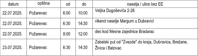 Zbog toga će bez električne energije biti korisnici na sledećim lokacijama: