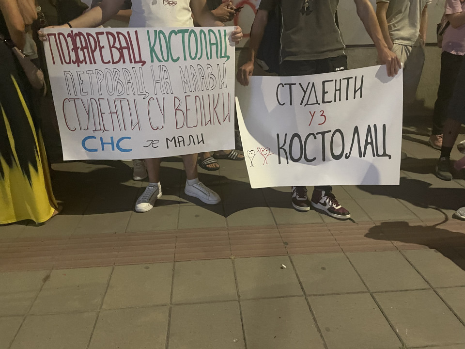 Jedan od transparenata glasio je „Studenti uz Kostolac”. Upravo u Kostolcu održaće se sledeći protest. Studenti su večeras pozvali građane da se sutra, 22. avgusta, u 19.30 okupe ispred Sportske hale u Kostolcu.