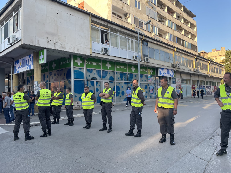 Nepomenik doveo ih prisilno a ovi u zutim prslucima cuvaju da neko ne pobegne. Kažu Nedamo Srbiju prodali ste je.